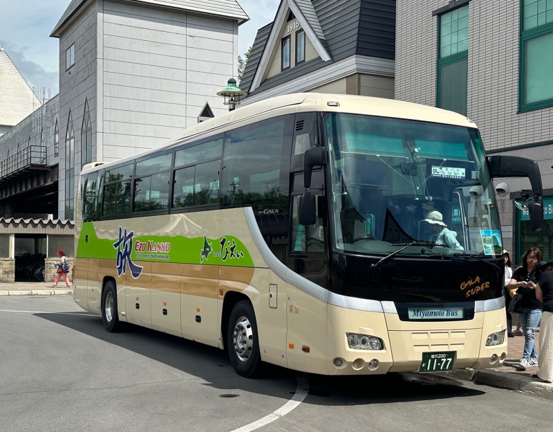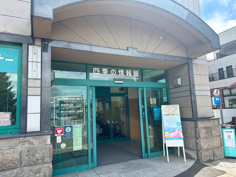 美瑛駅に到着。駅から徒歩約2分の場所に観光案内所「四季の情報館」があります。ここから出発する「美遊バス」の青い池・花畑 A (午前) コースの観光バスに乗ります。