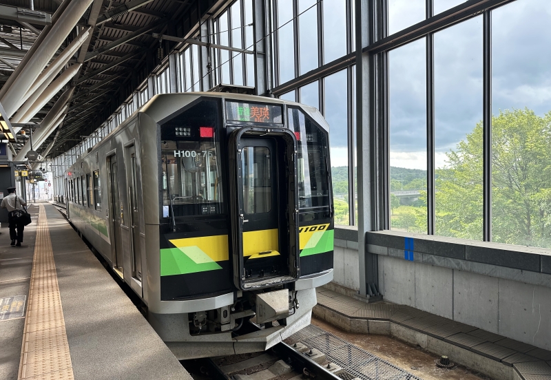 旭川駅からJR富良野線で美瑛駅に向かいます。乗り継ぎ時間は15分程度でしたが、初めてでも迷うことなく乗り継ぐことができました。