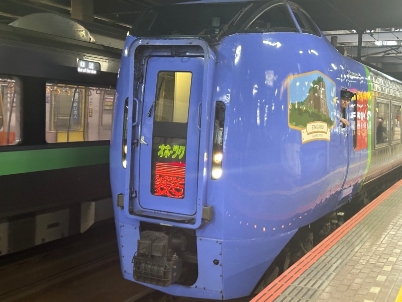 まずは、オホーツク1号で札幌駅から旭川駅へ。快適な車内で旭川駅に到着!
