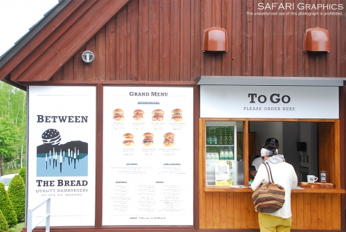隣の建物には「BETWEEN THE BREAD」というハンバーガーショップが入っており、美瑛産食材にこだわったボリューム満点のハンバーガーをできたてで提供しています。イートインスペースは30席、テラス席は40席用意。天気が良ければ、森の中でのピクニック気分が味わえます。