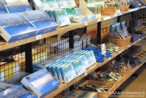 道の駅の建物内には、お土産品などを取り扱っているショップ「Blue Pond」があります。青い池にちなんだオリジナルの商品がずらり。商品だけでなく、パッケージも美しい青い池を意識したものが数多く取り揃えられています。