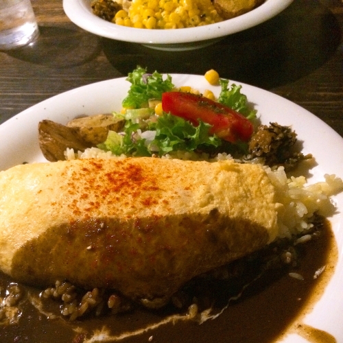 野菜や肉など、地元食材を使ったカレーにオムレツが乗った「オムカレー」は、ご当地メニューとして有名になりました。その先駆的な存在として知られるのが、こちら唯我独尊のカレーです。自家製ソーセージ付きカレーがお勧め。一皿1,150円。