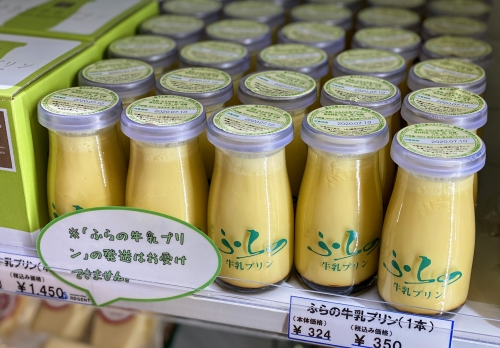 こちらのお店では、「ふらの牛乳プリン」がおすすめ!可愛らしい小さな牛乳瓶に入っているプリンは、ふらの牛乳、新鮮な卵、甜菜糖の含蜜糖など、原材料にこだわって作られています。素材そのままの味わいを生かした、濃厚な味わいが特徴的で、口の中でとろけます。1個300円。