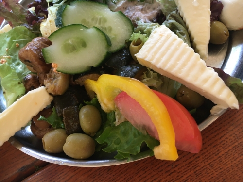 各トレーにはたくさんの品数が盛られていて、サラダ類にオリーブオイルで炒めた野菜、ハム、スモークサーモン、パンに塗るジャムやペースト類、オリーブ、フルーツに加え、日本では高くてなかなか思いっきり食べられない、ヨーロッパのチーズや発酵バターがふんだんに乗っています。