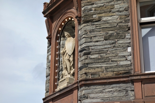 ここで見ておきたいのが、1608年に建てられたルネッサンス様式のカラフルな市庁舎と、その前に位置する聖ミハエルの泉。天秤と剣を持ち、金色の翼が美しい聖ミハエルの像が広場を見守っています。