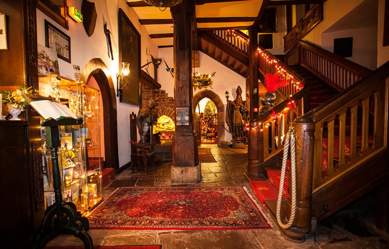 フロントのある建物の中は少し薄暗く、兵士の鎧が置かれていたりと、中世を感じさせられるいかにも“古城”といった雰囲気。