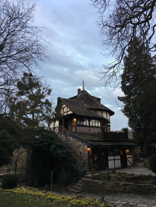 ホーフガイスマー/Hofgeismar駅からタクシーで約15分ほどで、ホテルブルク トレンデルブルクへ到着です。この城は13世紀に建てられ、20世紀半ばに古城ホテルとして新たに産声をあげました。小高い丘の上にあり、この約40メートルほどの高さを持つラプンツェルの塔が目印です。