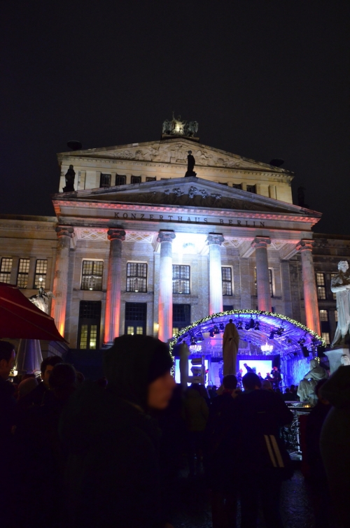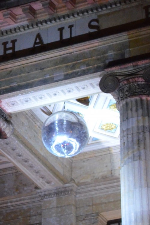 「Gendarmenmarkt」の中でも特に目立っているのが「コンサートハウス(Konzerthaus)」です。クリスマスマーケット開催中はミラーボールが設置され、真下では音楽バンドによるコンサートも開催されています。