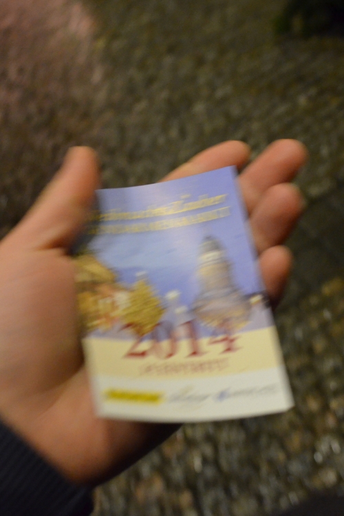 料金は一人たった1ユーロ(130円)で、12歳以下の子供は無料です。入場用のチケットがもらえるので記念にとっておいてもいいかもしれません。なお、クリスマスマーケット開催中でない普段の「Gendarmenmarkt」は入場料は要りません。