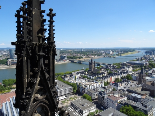 展望エリアでは塔の外側を一回りできるようになっています。長い階段を苦労して登った先から眺めるケルン市内の風景は、一層素晴らしいものがあります!