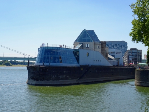 ホーエンツォレルン橋からライン川沿いを約15分ほど歩くと、チョコレート博物館へとたどり着きます。この博物館の屋根上も展望台となっていて、ライン川と周辺の街の風景が見られます。博物館の正面入り口からみて左側に階段が設けられてあり、博物館内へ入場しなくても、屋根上の展望台からライン川と街の風景を見ることができます。