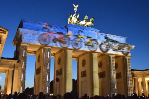 おそらくベルリンで最も有名なランドマークがブランデンブルグ門(Brandenburger Tor)です。国際的なイベントや事件がある度に注目される場所で、光の祭典以外でも、度々ライトアップが行われます。