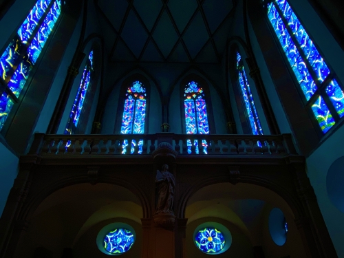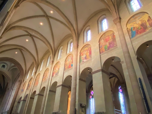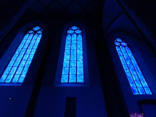 マインツにはいくつかの教会がありますが、中でも代表的なものがこの聖シュテファン教会です。その見どころは何といっても、シャガールの手掛けたステンドグラス。一歩教会に踏み入れると、息をのむような青い世界が広がります。