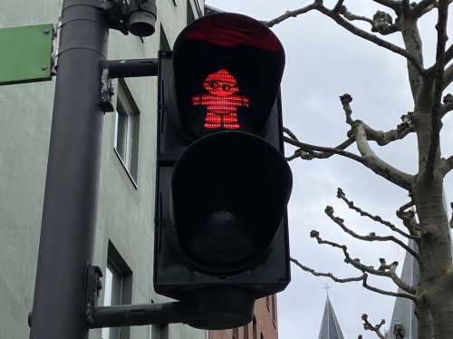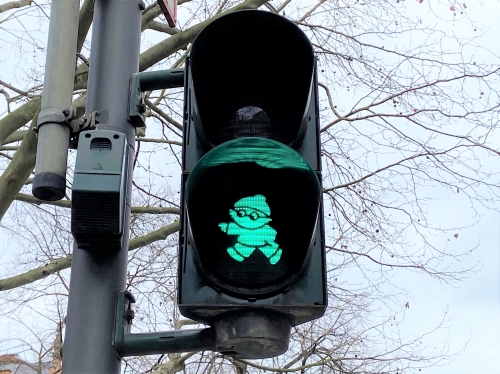 街歩きの際に、是非チェックして頂きたいのが、マインツ限定の信号機!このキャラクターはマインツェルメルヒェンといい、ドイツの2大公共放送局のひとつ、【ZDF(Zweite deutsches Fernsehen)】のマスコットキャラクターです。マインツは、そのZDFの本拠地となっており、街中にある信号のいくつかには、マインツメルヒェンが採用されています!