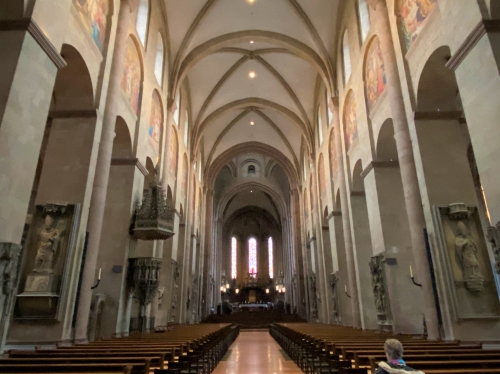 この街のシンボルともいえるマインツ大聖堂は、ケルン大聖堂・トリーア大聖堂とともに、ドイツ三大聖堂に挙げられます。どっしりと構えるその重厚な姿には、千年以上の歴史を持つ存在感を感じます。身廊に描かれた宗教画や堂内の彫刻にも注目です。