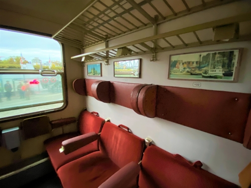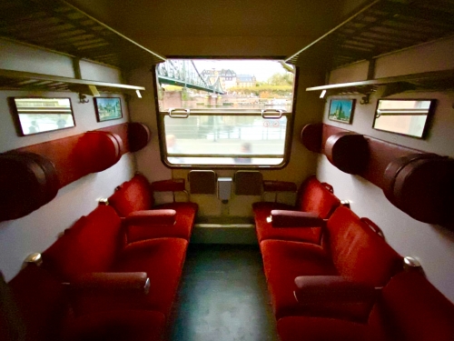 歴史鉄道だけあり、車内はどこか懐かしさを感じるレトロな雰囲気。数両編成の車両ではありますが、全車両6席のコンパートメントタイプとなっており、コンパートメント内にはドイツ各地の写真が飾られています。