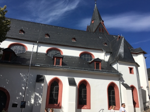 外観はいたって一般的で、思わず通り過ぎてしまいそうなこの教会ですが、その魅力は圧巻の天井画!2017年に修繕が完了しており、イトシュタインの中でも必ず訪れてほしいスポットです。