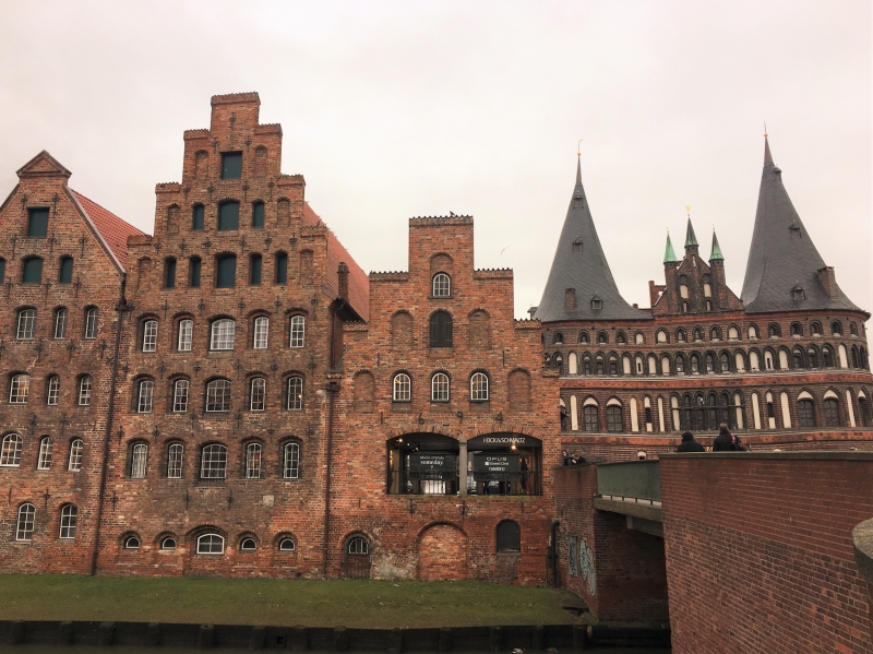ホルスステン門を抜けてすぐトラベ川沿いに、こちらも赤レンガで作られた建物が立ち並ぶ景色を見ることができます。ハンザ同盟時代、塩は富や権力と結びついていたといわれ、重要な資源でした。