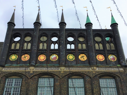 旧市街のマルクト広場には、繁栄していた当時の威厳を面影として残す市庁舎があります。牛の血で染めたといわれる黒レンガに槍のような緑の尖塔、バルト海からの強風を通すための風穴があけられており、独特な雰囲気を放っています。これらはリューベック特有の建築と言われています。