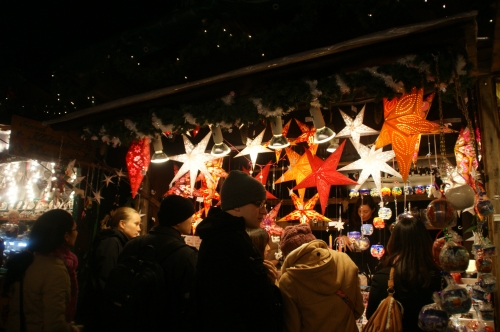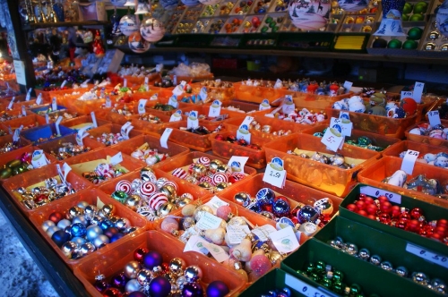 市内の主要なクリスマスマルクトの入口にはイルミネーションが飾られ、目を楽しませてくれます。マリエン広場(Marienplatz)の市庁舎前では、電球が灯されたツリーがお出迎え。暗がりの中、クリスマスグッズを眺めながらそぞろ歩くのは格別な気分です♪