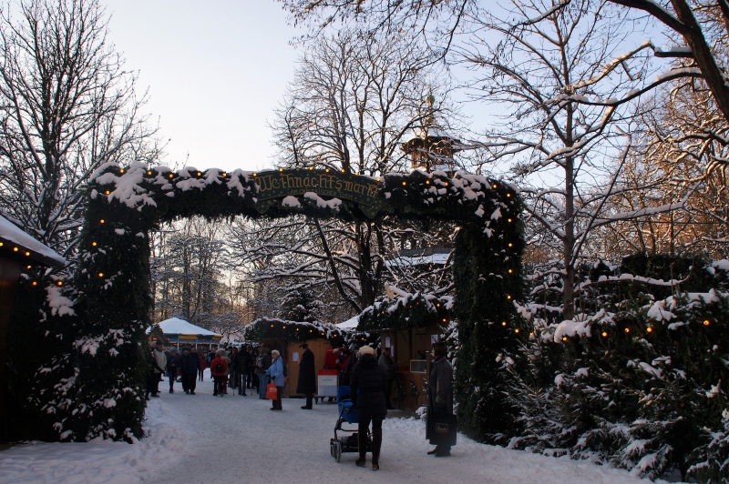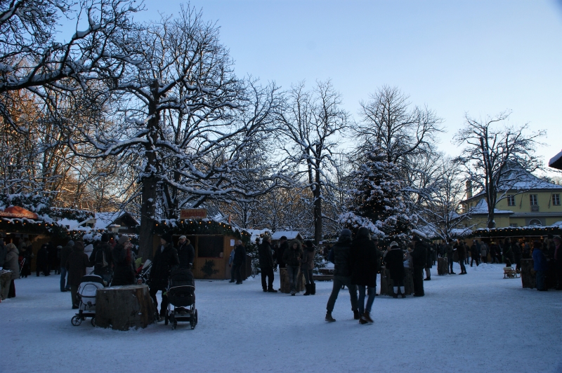 寒さはもちろん厳しいのですが、それを忘れさせてくれるような幻想的な光景が、あちこちで見られます。街中のクリスマスマルクトも雪の日には風情たっぷりですが、この「中国の塔(Chinesischer Turm)」は自然豊かな立地なので、よりいっそう真っ白な雪の美しさが際立ちます。