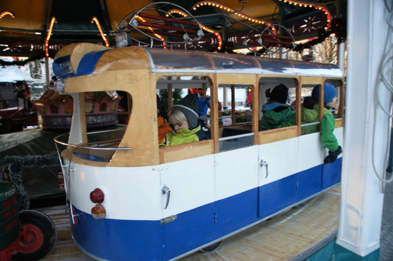 このメリーゴーラウンド、乗り物がすべてレトロでカワイイ!昔のトラム(路面電車)を模したものや、古めかしいオートバイ、ドイツ国旗をはためかせたクラシック・ベンツのオープンカーなど、なかなか珍しいものだらけ。大人もつい乗りたくなってしまうかも?