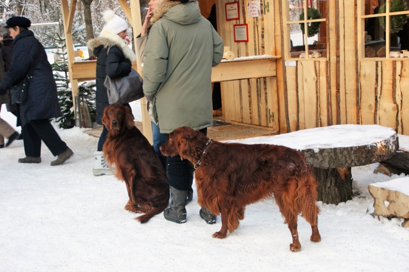 立派なワンちゃんもマルクト見物に♪ドイツ人は犬好きな人が多く、日本では考えられないような大型犬を連れて散歩する風景も、よく見られます。もふもふの犬に、フカフカの新雪がよく似合っていますね!