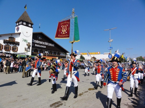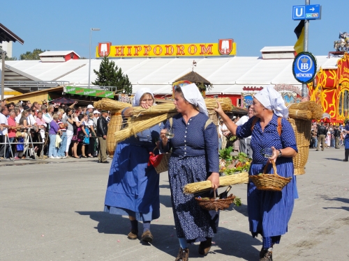 鼓笛隊や楽団の演奏も、開会式のムードを盛り上げてくれます。ここでもやはり目を奪われるのは、出演者のコスチューム。ドイツビールの原料となるホップや大麦などの収穫物を手にした、農夫風の一団も!オクトーバーフェストならではの演出に、シャッターを切る手が止まりません。