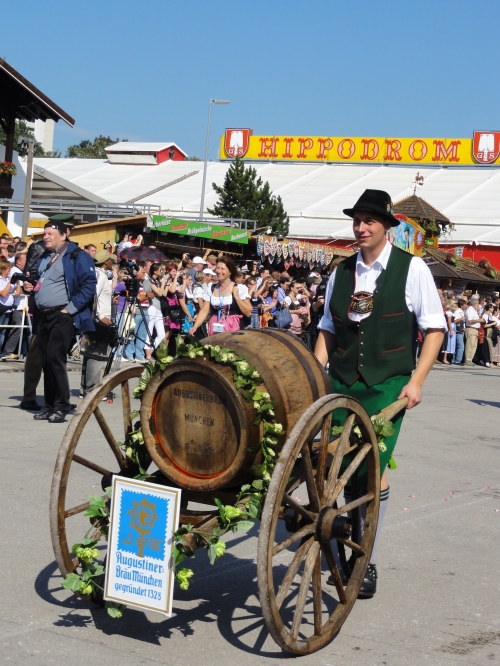 その見どころの一つが、お祭りの開幕パレード。オクトーバーフェストは毎年9月下旬の土曜日正午から開催されますが、開会時刻に合わせて華やかなパレードが行われるのです!できたてのビール樽が馬車に積まれ、10時45分頃にミュンヘン市内中心部の通りを出発。約45分かけて会場に到着し、その樽を市長が割ると同時に“開会”が宣言されるという流れです。