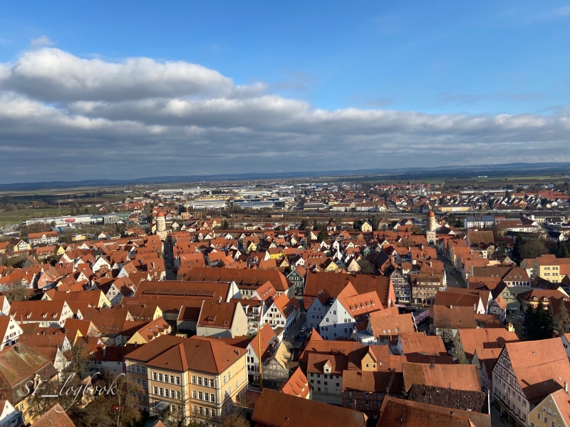 塔の上からの眺めは格別!ネルトリンゲンの街を一望できます。オレンジの屋根が一面に広がり、城壁に囲まれた街は美しい景色です。街が円形をしていることもよくわかります。