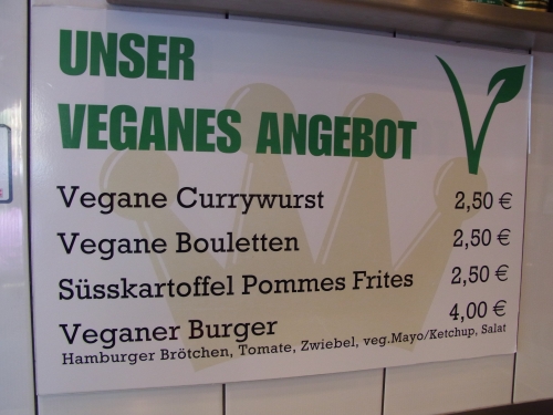 こちらはさらにヴィーガンにも特化したカリーブルストのお店です。ヴィーガンは肉だけでなく、卵や乳製品の食事制限もあるのですが、ブーレッテというハンバーグもなんと植物性のものだけで作られているそうです。