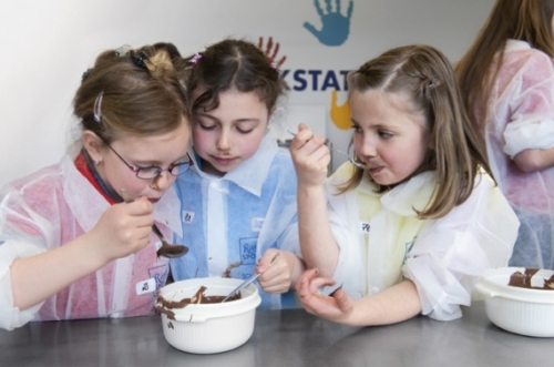 そのほかにも、リッタースポーツの商品の歴史やチョコレートができるまでの展示などを、五感で楽しむことができるミュージアムエリアがあります。さらに事前予約制で、子供向けのチョコレート作りのワークショップなども行われています(ドイツ語のみ)。