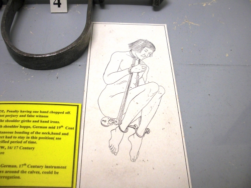 中世の法律について説明されているだけではなく、刑罰や拷問の道具もずらり。