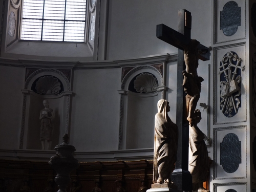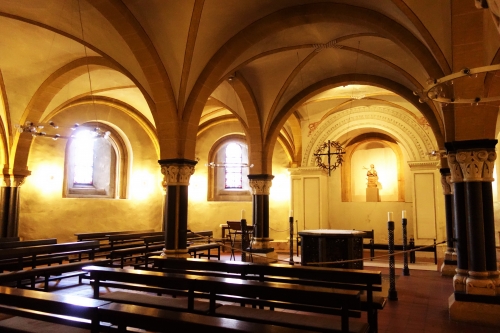 長い年月をかけて修復や増築がなされ、ロマネスク、ゴシックなど、さまざまな建築様式が混在しているのが特徴です。大聖堂内も重厚かつ壮大な佇まいで、神聖な空気に包まれています。地下には、また違った雰囲気の礼拝堂があり、見学できるので時間があれば見学をお勧めします。