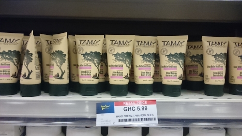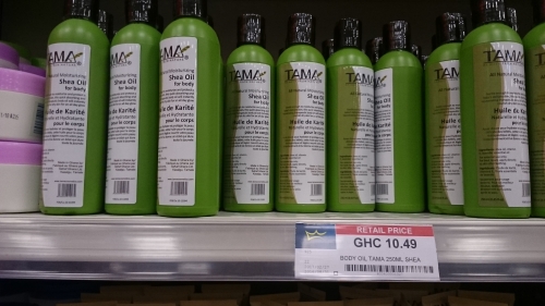 パッケージに詰めていない、そのままのシアバターならローカルマーケットで購入可能です。上記写真のようにきちんとパッケージ化された商品は、マーケットでの取り扱いはありません。首都のショッピングモールにてお求めください。