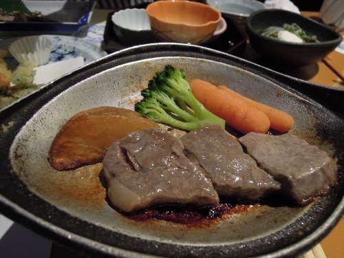 少しボリュームのある料理も取り入れられています。和牛ステーキは、簡単に噛み切れるほど柔らかく、香ばしい肉の風味も楽しめます。