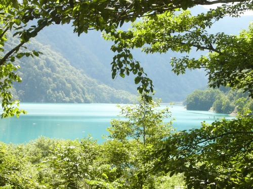 周辺には白水湖や、湖を眺めながら入浴できる露天風呂など、滝以外にもおすすめスポットがあります。中でも観瀑台から湖に向かう途中にある淵には、コバルトブルー色の美しい清流が流れており、まさに「絶景」です。