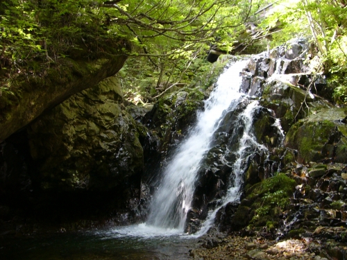 標高約800m、大日ヶ岳の南麓にかかる大瀑です。国道から約3km、駐車場や遊歩道(駐車場から滝までは徒歩約10分)も整備されており、アクセスしやすい滝です。