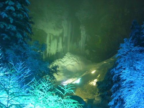 春の新緑や秋の紅葉も美しいですが、厳冬期に氷瀑となる姿は、一見の価値があります。ライトアップされた氷瀑はまさに幻想的です。