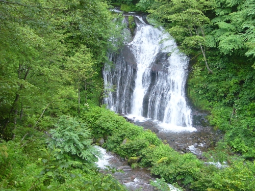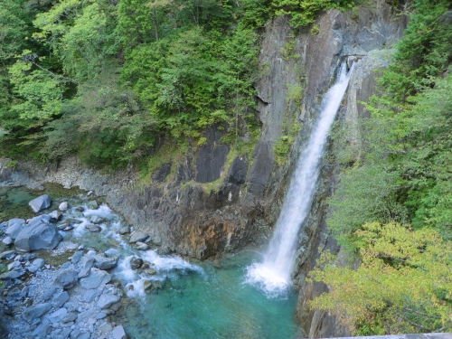 白山への岐阜県側からの登山ルートの起点となる大白川にかかる滝で、滝の上のある白水湖(ダム湖)から流れる水が滝となって流れ落ちています。滝壺には行けませんが観瀑台が整備されており、そこから滝を眺める事ができます。