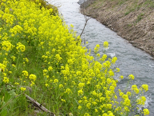 駅周辺には川が流れており、爽やかな清流の流れと川辺に咲く菜の花の風景も楽しむ事ができます。