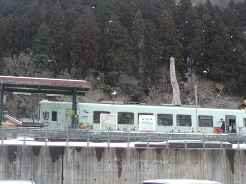 • 写真:ひさし終着駅樽見(駅前・冬に撮影)
