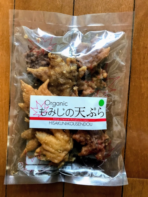 なんと、中には本物のもみじの葉が入っています!「天ぷら」という名前ですが、実際は固くかりかりとしていて、ほのかに甘い揚げせんべいのような感じがします。