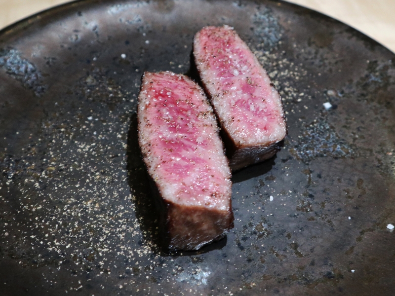最高品質の和牛は、焼き加減も絶妙で、お塩だけでも味わい深く感動ものです!