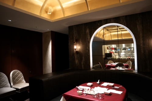 また、店内奥にはガラス張りのオープンキッチンがあり、食事をしながらシェフたちが調理している様子を見ることができ、料理を待つ時間も楽しめます。