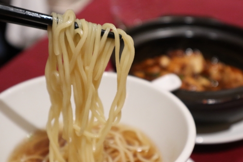 ピリ辛なスパイシー麻辣豆腐には、「汁そば」か「ご飯&スープ」をチョイスできます。筆者は汁そばを選びましたが、汁そばだけでもシンプルな味付けで、何とも言えない深い味わいが絶品!そしてこの汁そばは、花山椒が効いた麻辣豆腐を食べた後の、口の中の辛さを和らげてくれる優れた一品です。