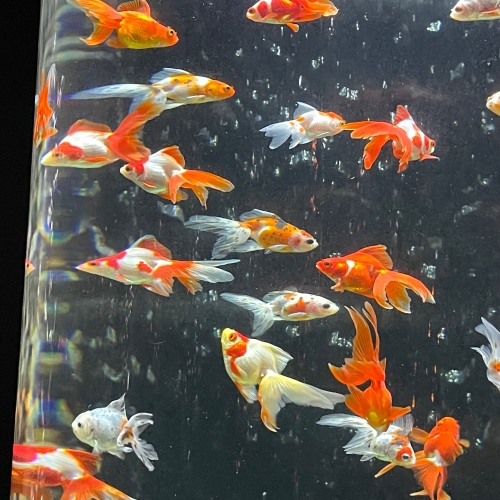 銀座三越の9階にある、常設のアートアクアリウム。日本の伝統美をテーマに、金魚の泳ぐ水槽空間をデジタルアートで幻想的に演出します。季節やクリスマスなどイベントに合わせた企画展示も見どころです。館内は照明が抑えられていますが、ここ1番のフォトスポットにはスポットライトが用意され、写真が撮りやすいよう工夫されています。