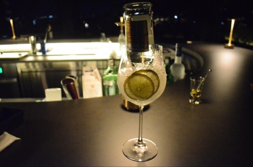 プロのバーテンダーさんが 目の前でこしらえてくれるカクテルは、どれも隙のないおいしい作品といった感じ。名物はジントニックです。イギリス・フィーバーツリーのトニックウォーターが突き刺さっています(写真上段左)。