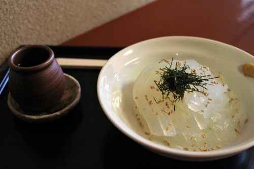 さらにパフェに加えて、「わらびもちぜんざい(1,050円/税込)」と「ところてん(850円/税込)」をオーダー。いずれも、厳選された素材の美味しさが引き立つ逸品です。「ところてん」の味付けは、黒みつ以外にお酢も選べるので、辛党の方にもおすすめのスイーツです。