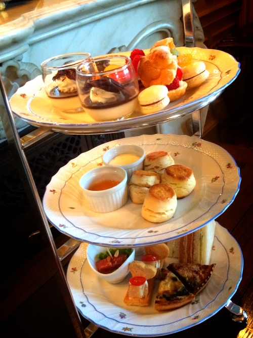 英国式の3段アフタヌーンティースタンドには、スコーンやサンドウィッチ、季節ごとに異なるケーキが並び、お茶とともに優雅なひと時を彩ってくれます。スパークリングワイン、またはフレッシュジュースがつくほか、紅茶のおかわりが自由。アフタヌーンティーは2名から利用可能で、事前の予約が必要になります。